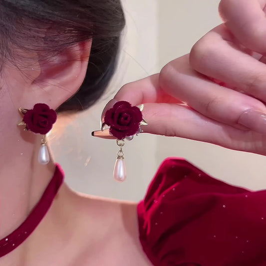 Cultural Story Roses are a timeless symbol of love and beauty, while pearls represent purity and elegance. The velvet texture adds a touch of luxury and sophistication. This “Rose Velvet Flower Pearl Earrings” combines these elements, carrying wishes for a life filled with love,...