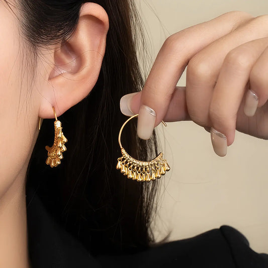 Cultural Story Teardrops, symbols of emotion and gentle movement, inspire these “Gold Teardrop Fringe Hoop Earrings.” Blending the fluidity of falling drops with the structure of hoops, they capture a sense of grace and dynamism. Perfect for those who want jewelry that evokes feeling—whether...