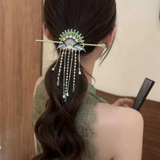 Cultural Story The folding fan, a classic symbol of Chinese elegance and refinement, carries cultural heritage and poetic charm. Pearls and shells, long - cherished in Asian aesthetics, represent purity, beauty, and connection to nature. This “Fan - shaped Pearl Shell Tassel Hairpin” merges...