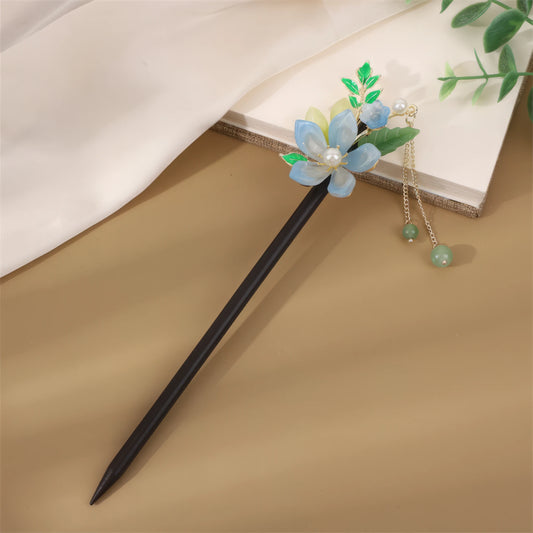 • Dongli hairpin with blue flower and red bead decorations