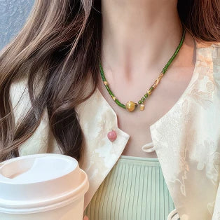 Cultural Story The lotus leaf, symbolizing purity, tranquility, and nature - connection, meets pumpkins—emblems of abundance, harvest, and warmth. The “Lotus - Leaf and Pumpkin Necklace” blends these, merging tranquility and plenty. A reminder to find peace in simplicity, celebrate life’s fullness. It unites...